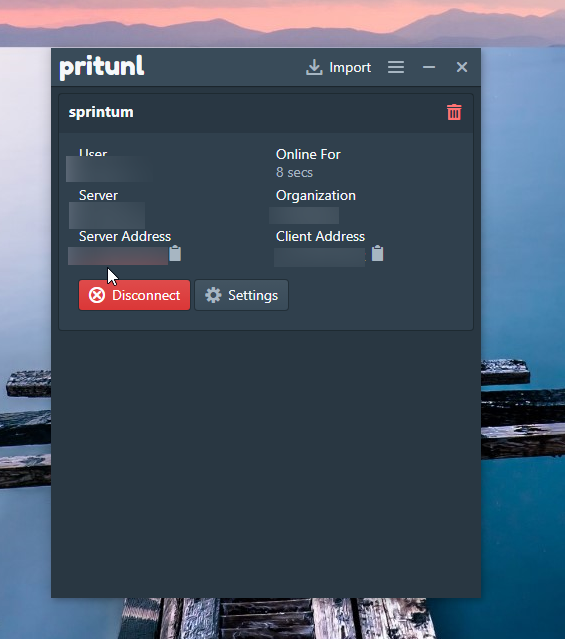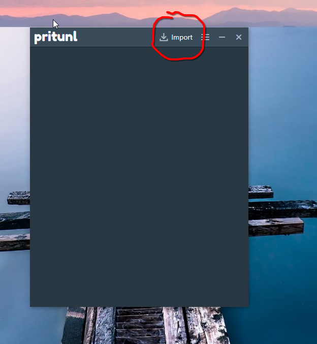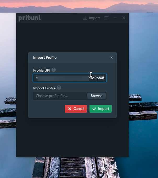3. В поле "Profile URI" вставьте выданную личную ссылку на профиль и нажмите Import. Второе поле заполнять не нужно.