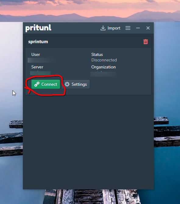 2. Если вы подключаетесь в первый раз - Нажмите Import, иначе перейдите к пункту 4